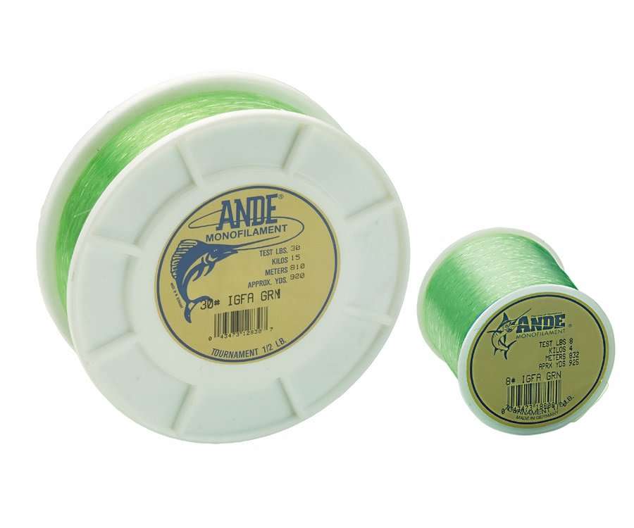 ANDE TOURNAMENT il monofilo conosciuto in tutto il mondo e che vanta più record in assoluto nasce nel colore verde smeraldo, è fatto con diametri speciali che danno al pescatore la sicurezza che in gara o durante la conquista di un record, questo monofilo sia perfettamente conforme agli standard IGFA e quindi omologato IGFA-MGFA-EFSA. Inoltre durante il pre-test, questo monofilo garantisce che non venga superato il limite massimo di rottura pur consentendo la massima tenuta possibile per quel libraggio. La ANDE garantisce la corrispondenza a tutti i requisiti IGFA su tutto il monofilo TOURNAMENT e su qualsiasi libraggio dalle 4 alle 130 lbs senza nessuna congettura né errori. ANDE TOURNAMENT non ti riserverà sorprese.