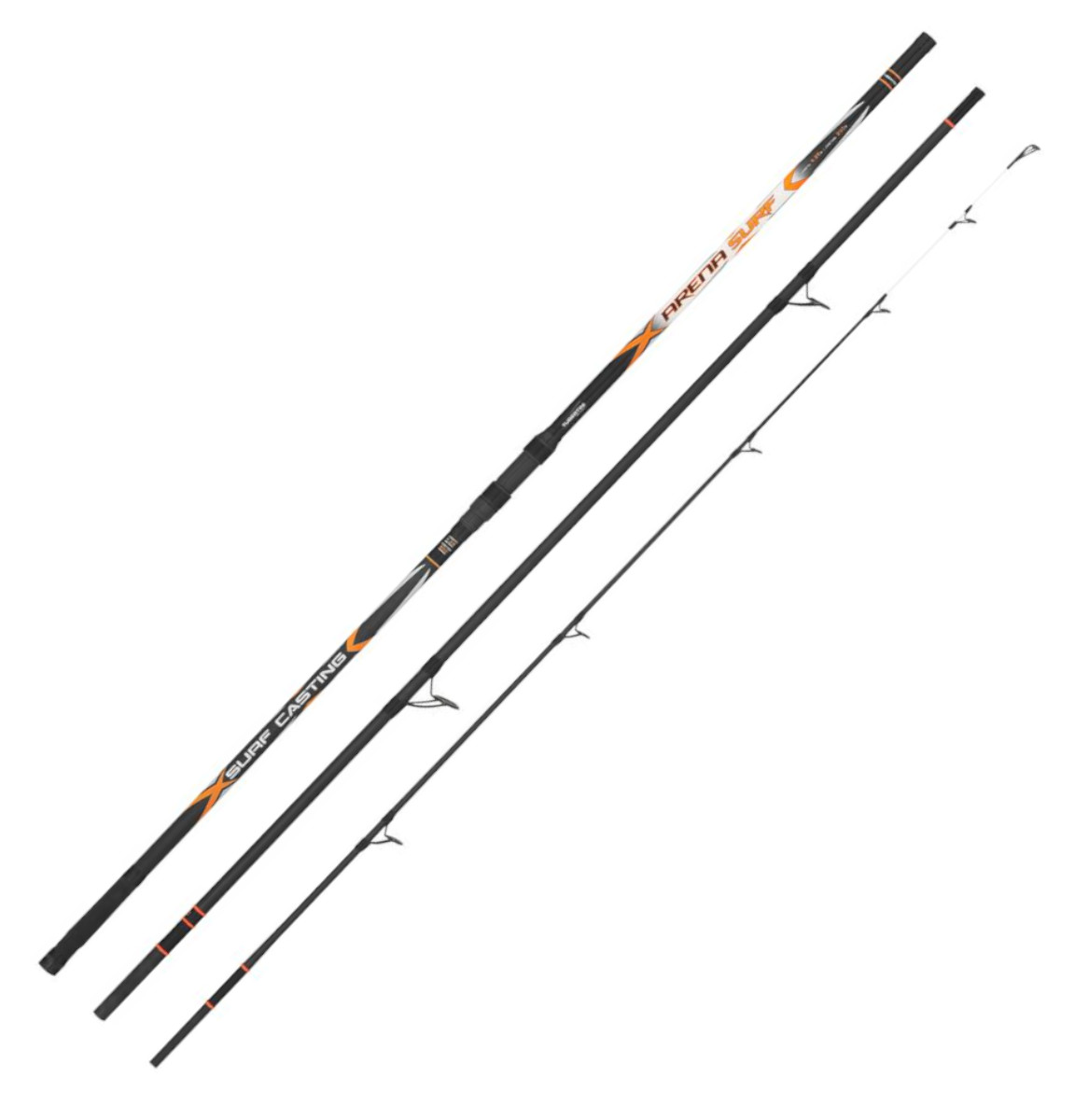 Canna Surfcasting Tubertini ARENA SURF Serie di canne da surf in tre pezzi dotate di vetta tubolare sensibile e verniciata all’estremità con finitura fosforescente. Sono state attentamente studiate e testate per ottenere ottime distanze di lancio e precisione con estrema facilità. Completano l’allestimento il porta mulinello a vite, gli anelli SiC con telaio K e il pomello posteriore in gomma per un’ottima stabilità in fase di pesca.