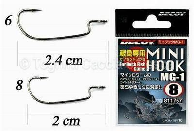 I Mini Hook MG-1 della Decoy è un piccolo amo offset, ideale per innescare micro softbaits per il Rock Fishing. Per inneschi come Split Shot, ecc. . .