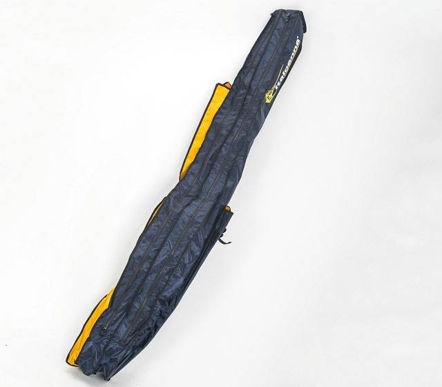 Fodero portacanna surf con doppio scomparto per il trasporto di canne montate con mulinello e scomparto laterale porta picchetti. Materiale di ottima qualità e resistente agli agenti marini.