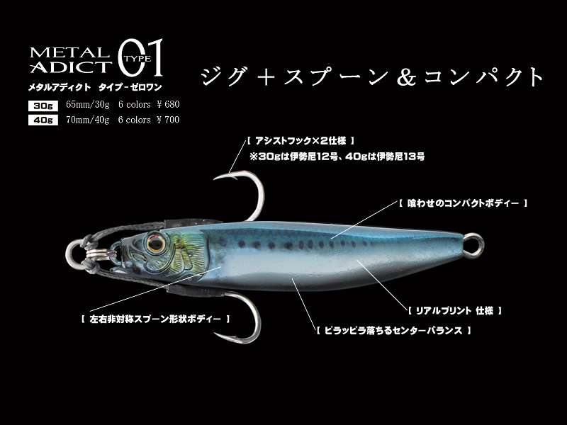ovità assoluta nel campo dei casting jig. Un esca fusion che unisce le caratteristiche uniche di un casting jig con quelle di un tipico cucchiaino rendendo questa esca unica. Ciò che appare subito evidente ad un primo sguardo è la sua forma che grazie al suo corpo curvo asimmetrico produrrà un nuoto altamente adescante, imitando alla perfezione un piccolo pesce in difficoltà preda ideale per i predatori nelle vicinanze. Dopo diversi prototipi si è quindi giunti a questo che presenta un ottimo aspetto equilibrato sia durante la fase di caduta, sia quella di recupero, permettendo, inoltre lanci lunghissimi. FORNITO CON DOPPIO ASSIST IN TESTA.