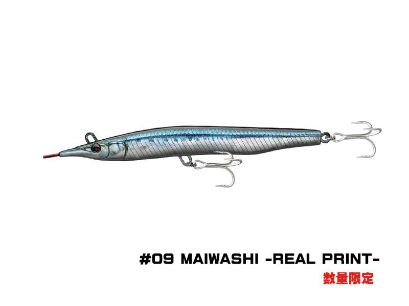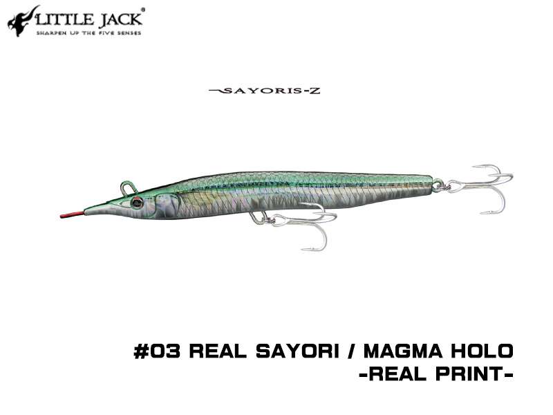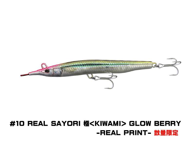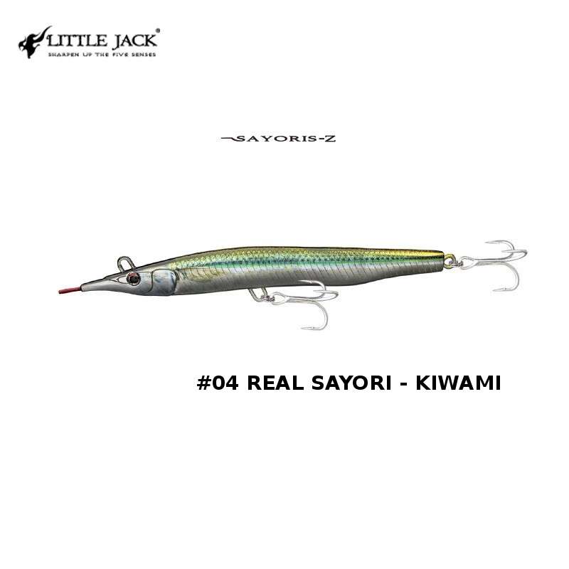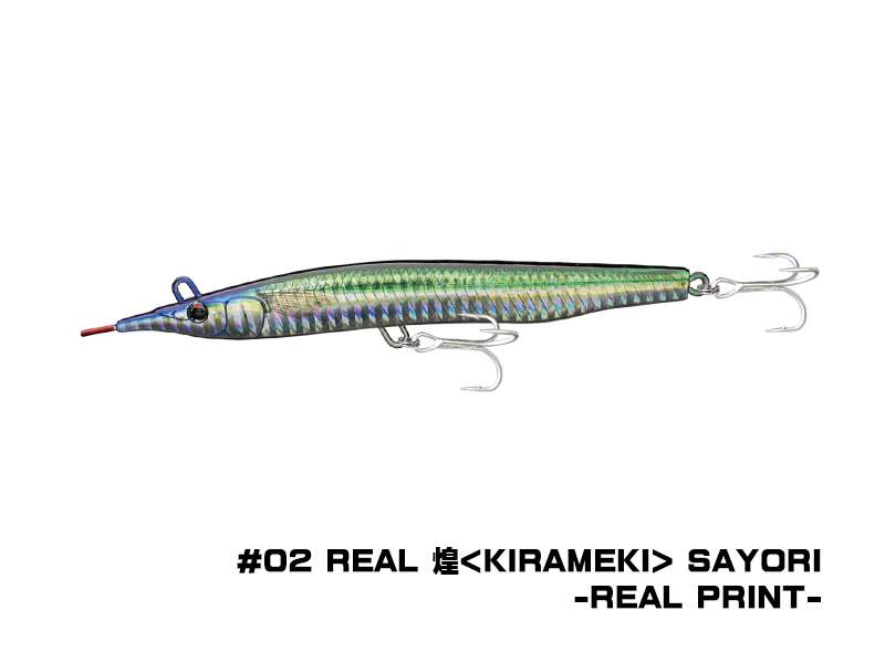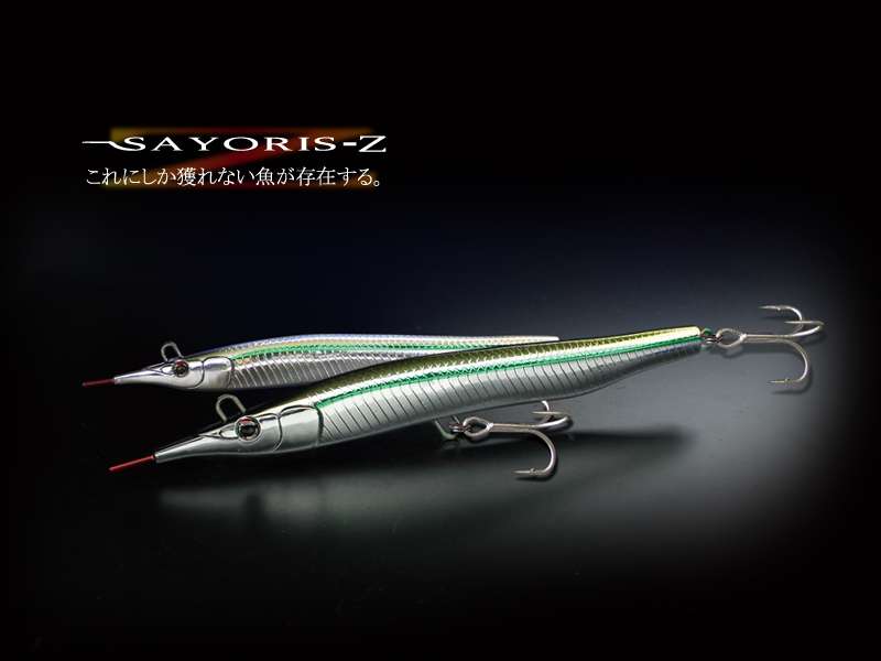 SAYORIS-Z è la seconda versione del vecchio progetto. Come si può facilmente evincere dalla forma, questa esca è l’imitazione di una piccola aguglia, rostro compreso. Grazie al rapporto peso/volume si riesce a lanciare a notevole distanza (circa 60m). L’anellino di congiunzione con il finale non si trova in punta ma bensì tra gli occhi nella parte superiore. Il risultato è un movimento caratterizzato da un accentuato rollio e sbandate laterali sulle jerkate.