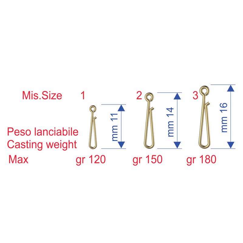 Attacco rapido in acciaio inox di forma molto sottile per agevolarne il passaggio negli anelli della canna. Ideale per il collegamento del trave allo shock leader o del piombo terminale.