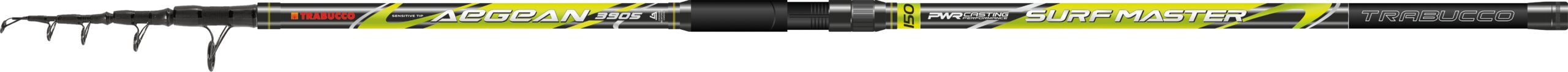La nuova canna da surf casting Trabucco Aegean Surf Master ha la struttura telescopica composta da 5 sezioni con azione veloce e potente e casting da 150 grammi. Grezzi prodotti da S.H.M.R. Carbonio ad alta resistenza con rinforzi nelle giunture. Zero Frictio Blank, finitura che respinge l’acqua per evitare che la lenza si attacchi al grezzo. Vetta sensibile in carbonio pieno, verniciata in bianco ad alta visibilità, anelli S-Sic a doppio ponte con telaio MN anticorrosione e o-ring di protezione. Porta mulinello ergonomico in grafite con chiusura a vite in acciaio inossidabile. Tappo in alluminio paracolpi con inserto in gomma.