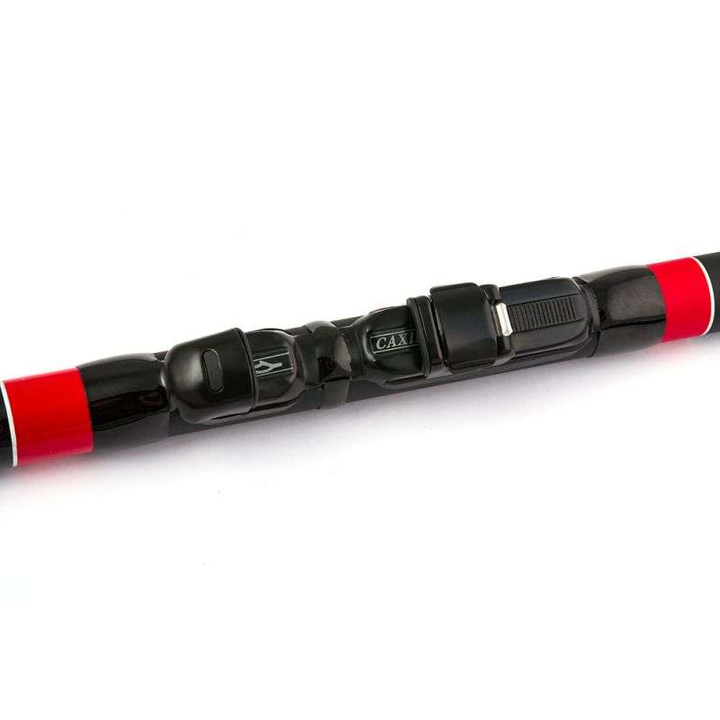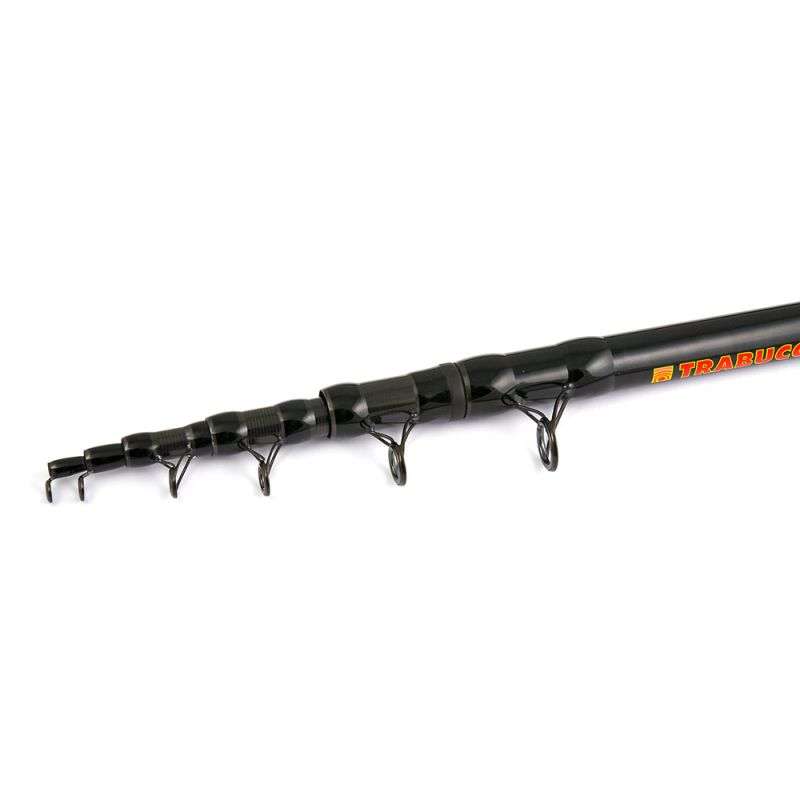 pescare in qualsiasi condizione di corrente. Monta anelli in SIC a doppio gambo con telaio trattato anti corrosione PVD (Phisical Vapor Deposition) ed è dotata di un blocco di teleregolazione a monte del calcio, che consente di ridurne la lunghezza operativa da 4 a 3 metri.