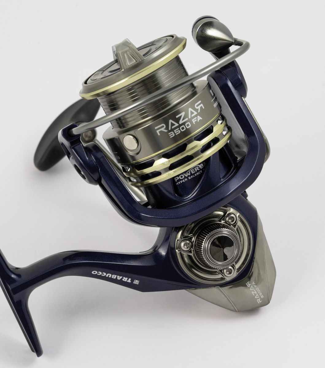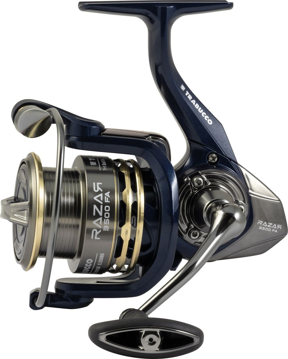 Il nuovo mulinello a frizione anteriore Trabucco Razar FA ha il corpo e rotore in grafite indurita (Xtra Tough Body). Bobina in alluminio con profilo anteriore sottile (V-Spool), lavorata a CNC e sovradimensionata che permette di migliorare le prestazioni della fuoriuscita del filo in fase di lancio, 7 cuscinetti a sfere con doppia schermatura Long Life BB e 1 cuscinetto a rulli (antiritorno infinito). Frizione anteriore microregolabile con rondelle maggiorate, Power Bail di grande diametro con rullino Anti Twist. Manovella Power Fight in alluminio con pomello Soft Touch.