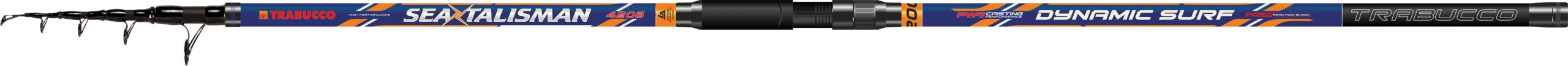 La canna telescopica da surfcasting Trabucco Seatalisman Dynamic Surf è composta da sei sezioni realizzate in carbonio S.H.M.R., con innesti rinforzati da fasce di carbonio per una maggiore resistenza e una riduzione delle oscillazioni. La punta, realizzata in carbonio pieno, è colorata con vernice ad alta visibilità per una facile localizzazione durante le ore notturne. La finitura esterna Zero Friction respinge l’umidità e le gocce d’acqua, garantendo prestazioni ottimali in condizioni ambientali avverse. Le diverse colorazioni estetiche identificano le due potenze disponibili: il colore arancione corrisponde a una potenza di 200 g, mentre il giallo indica una potenza di 150 g. Gli anelli a doppio ponte S-SiC MN, con telaio resistente alla corrosione da salsedine, assicurano un’ottima scorrevolezza della lenza. Il portamulinello DPS, realizzato in grafite, ha una forma ergonomica per una presa comoda e sicura. La parte finale del manico è dotata di una presa antiscivolo, che facilita la pulizia dopo l’uso. Il tappo di chiusura in alluminio con inserto in gomma protegge la canna da urti e danni accidentali.