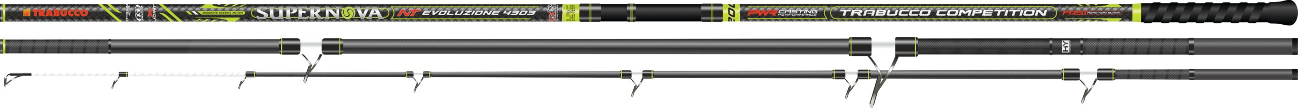 La canna da surfcasting Trabucco Supernova NT Evo Surf è progettata per offrire elevate prestazioni grazie alla combinazione di tecnologie innovative e materiali di alta qualità. I fusti della canna sono realizzati con CX Nano Carbon a basso contenuto di resina (LRC – Low Resin Content), che conferisce leggerezza, resistenza e reattività. Questo materiale consente una migliore gestione delle sollecitazioni durante il lancio, migliorando le performance complessive della canna. Una delle tecnologie chiave integrate nella Supernova NT Evo Surf è la Twist Free, progettata per bloccare la torsione del fusto durante il lancio. Ciò si traduce in una maggiore precisione e distanza nel lancio, essenziale per il surfcasting. Questa tecnologia è implementata sia sulla base della canna che su una porzione della vetta, consentendo di contrastare efficacemente le torsioni generate durante il lancio. Gli avvolgimenti del carbonio a 45° sui giunti della canna, noti come X-Joint, contribuiscono a ottenere una curvatura perfetta e annullano le oscillazioni del fusto, garantendo una maggiore stabilità e precisione durante il lancio. Gli anelli metallici ultraleggeri sono posizionati strategicamente come rinforzo alle sezioni della canna, assicurando una distribuzione uniforme delle sollecitazioni e una maggiore resistenza. La punta Hybrid Tip è un elemento distintivo della Supernova NT Evo Surf, composta da un vettino in carbonio solido senza spina, innestato su una sezione tubolare. Questa punta è particolarmente sensibile e performante, consentendo al pescatore di percepire anche le piccole tocche dei pesci. La parte finale della punta è colorata con vernice ad alta visibilità e avvolta con nastro catarifrangente, garantendo una buona visibilità anche in condizioni di scarsa illuminazione. La finitura esterna Slick Surface è progettata per respingere le gocce d’acqua, riducendo l’attrito con la lenza e consentendo lanci più fluidi e precisi. Gli anelli Sea Guide SiC Titanium, con design del telaio K in acciaio inossidabile anti groviglio, sono fissati mediante doppia legatura che sigilla i piedi degli anelli contro l’intrusione di acqua salata. Tra le legature degli anelli è inserita una fascia con filo catarifrangente per una migliore localizzazione notturna della canna, particolarmente utile durante le sessioni di pesca notturna. La canna è dotata di una placca portamulinello Fuji LS7 con supporto centrale removibile, progettata per alloggiare mulinelli di grandi dimensioni in modo sicuro e stabile. Infine, l’impugnatura sagomata ed ergonomica offre un comfort ottimale durante l’uso della canna e consente al pescatore di mantenere un controllo totale durante il lancio.